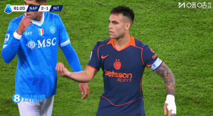 第61分钟,劳塔罗和场下的那不勒斯主帅孔蒂发生了一些口角,最后孔蒂吃到了黄牌↓