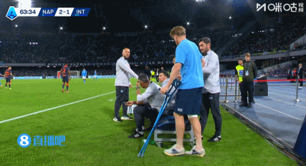 第64分钟,德布劳内拄着拐回到球场,再替补席继续观战↓