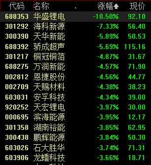锂电池板块回落,华盛锂电、海科新源大跌,天华新能、骄成超声、恩捷股份等跌幅居前。